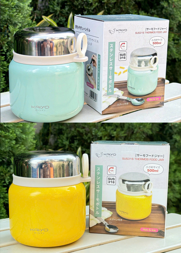 💥ĐẶC ĐIỂM NỔI BẬT👉Chất liệu inox 304 từ trong ra ngoài, inox chuẩn xịn nên xách cái bình nó dầy dặn, chắn chắn cực kỳ luôn ạ! 👉Phần nắp thiết kế mở dạng One-touch chỉ 1 lần chạm. Đi kèm có lọc trà inox 304, nên chị em có thể pha các loại trà hoa, trà detox, trà đỗ đen gạo lứt hay trà táo đỏ...👉Dung tích 800ml cỡ lớn👉Thiết kế với quai xách chắc chắn, chị em mang đi dã ngoại, tập gym, yoga hay tập thể thao ngoài trời đều tiện lợi vô cùng.👉Bình giữ nhiệt 24h kèm lọc trà inox 304 tiện lợi--------------------------------------------------------2 - Bình ủ cháo inox 316, dung tích 500ml - Thương hiệu: Kaiyo- Kích thước và trọng lượng: + Đường kính đáy: 12cm | Chiều cao (Từ đáy đến nắp mở): 11cm | Đường kính nắp mở: 9cm+ Trọng lượng: 0.7 kg- Chất liệu: Inox 316 và nhựa PP- Dung tích: 500ml- Màu sắc: Màu Vàng và màu Xanh Mint