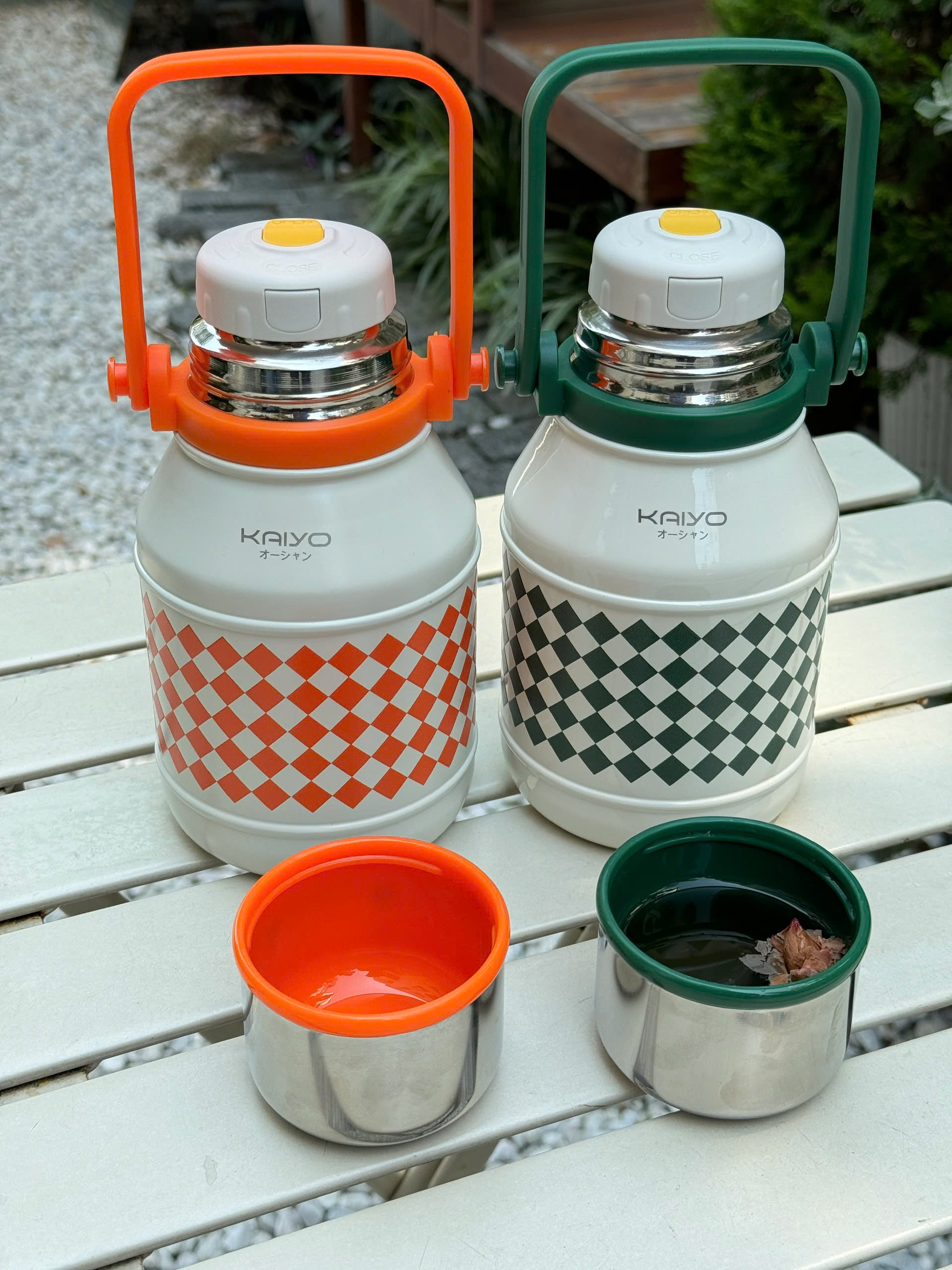💥THÔNG TIN SẢN PHẨM1 - Bình giữ nhiệt caro có quai xách 800ml Kaiyo - Thương hiệu: Kaiyo- Kích thước và trọng lượng: + Đường kính đáy: 11cm | Chiều cao (Từ đáy đến nắp mở): 20cm | Chiều Cao (Từ đáy đến quai cầm): 24cm+ Trọng lượng: 0.5 kg- Chất liệu: Inox 304 và nhựa PP- Dung tích: 800ml- Màu sắc: Màu Cam và màu Xanh
